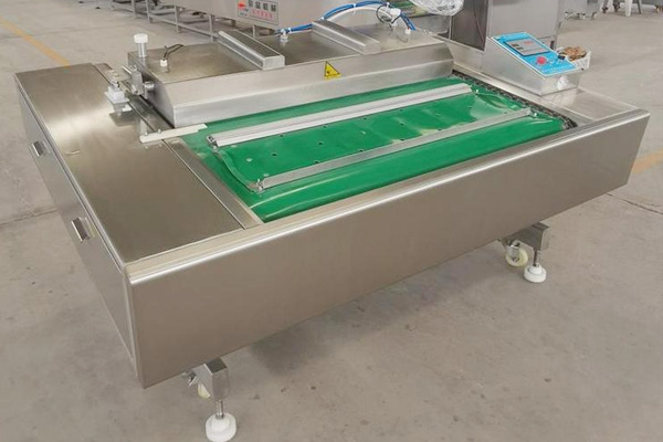氣動連續真空包裝機是我公司研制的一款節能型真空包裝機。 該機采用負壓傳動,以汽缸代替了傳統的電機,通過齒輪, 齒條傳動定位,具有精度高、升降平穩、滾動皮帶走帶定位 準確的顯著特點;設備操作人員無須手動調整傳送帶位置, 更省時省力;這種傳動方式是傳統的連桿傳動方式不可比的。 同時氣動連續滾動真空包裝機由于取代了電機,節省了電能, 操作后臺也不用進行特殊保護,更不用